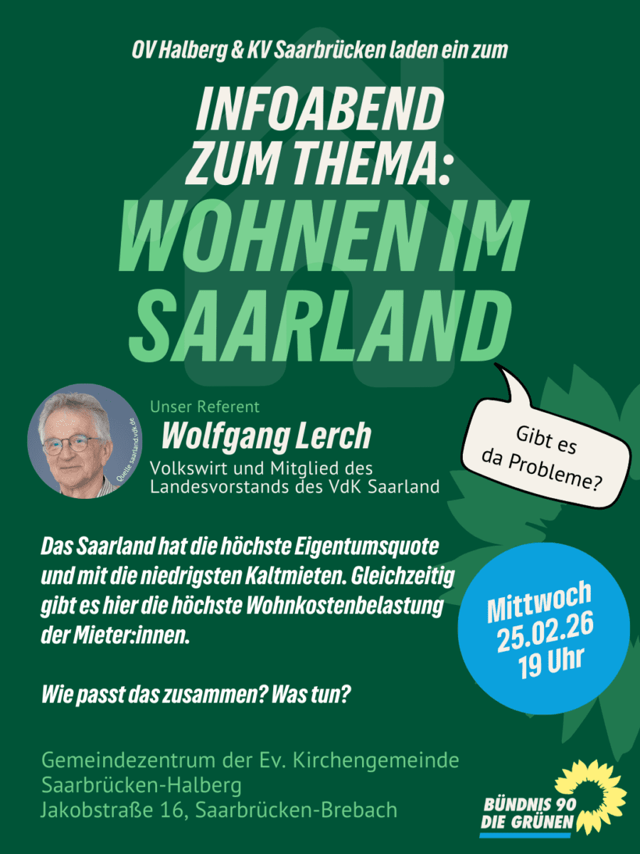 Der Ortsverband Halberg und der Kreisverband Saarbrücken laden herzlich ein zu einem Informations- und Diskussionsabend rund um die aktuelle Lage auf dem saarländischen Wohnungsmarkt.